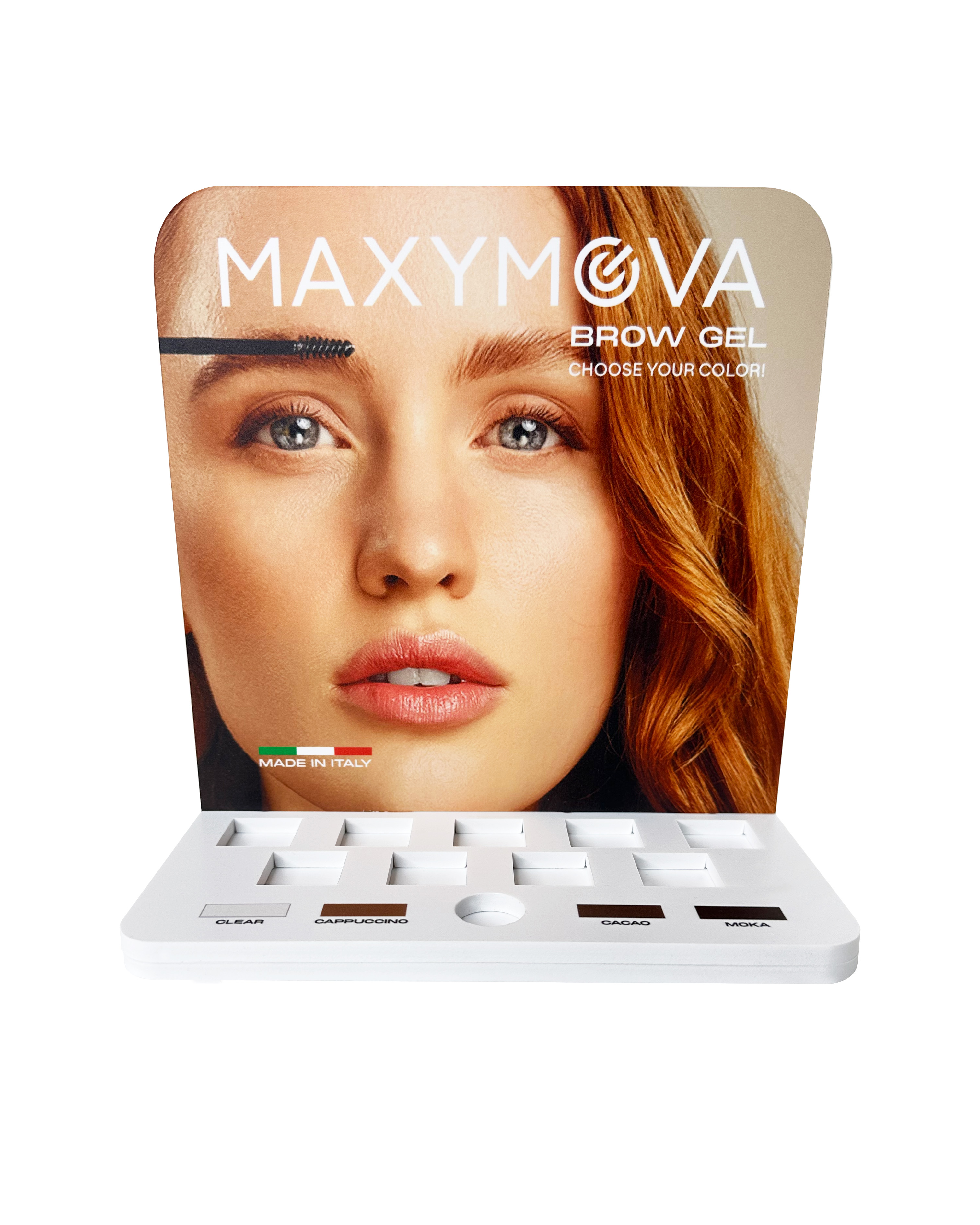 ¡Maximiza la visibilidad, aumenta las ventas al por menor y ofrece a los clientes una experiencia de estilizado de cejas de primera calidad con el MAXYMOVA Brow Gel Display Stand!